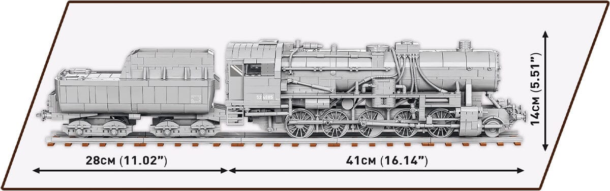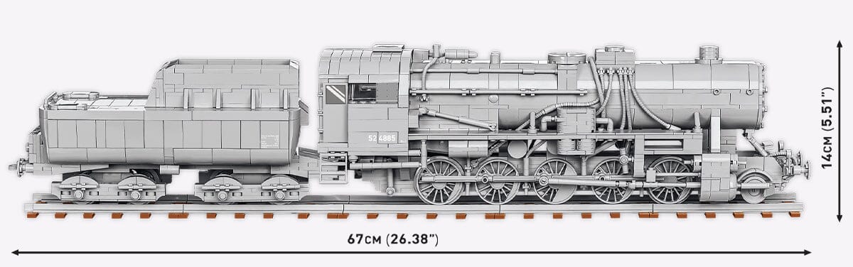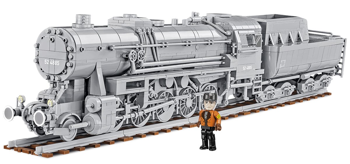 Introducing the all-new German Kriegslokomotive Baureihe 52 steam locomotive brick model from World War II, part of COBI's "Trains" collection. This brick model faithfully reproduces the body, proportions, and intricate details of the legendary steam locomotive, known worldwide as one of the most iconic and recognizable railway engines.