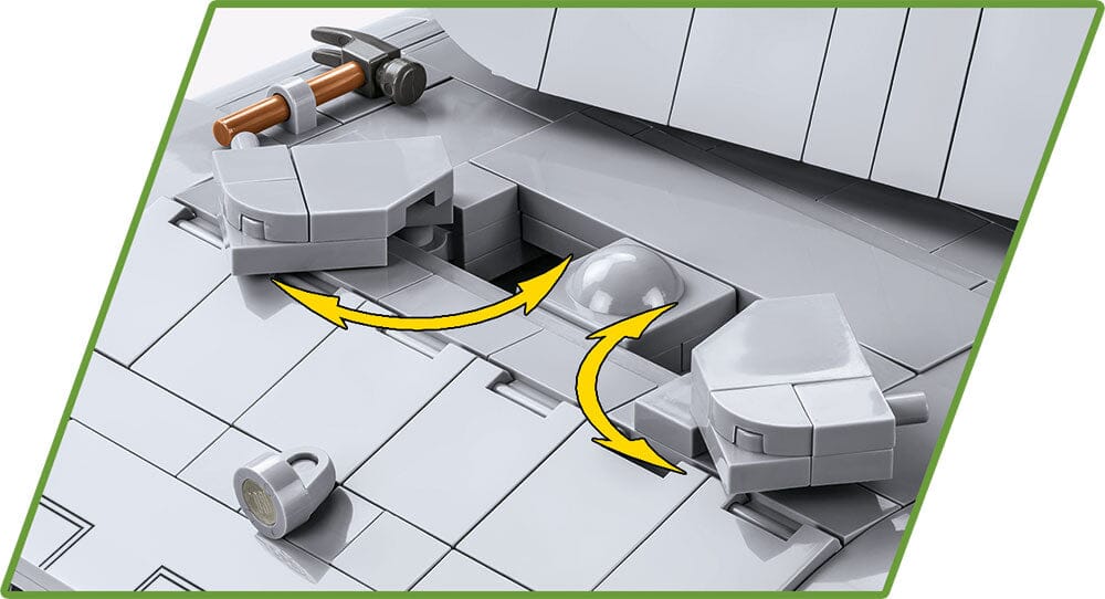 Experience the sheer power of the Panzerkampfwagen E-100 with this extraordinary model, meticulously constructed at a large 1:28 scale using 1511 elements. This impressive tank measures 37 cm in length, allowing for an intricately designed interior in both the turret and the vehicle itself. The model boasts several exciting features, including access to the service hatch, which reveals a removable engine. The turret can rotate, the cannon is movable, and the hatches for the crew are functional. The tank's tracks are also fully operational. To add to the excitement, the set includes a captivating figure of a tanker with a unique print on the back. Constructing this colossal model will provide hours of thrilling engagement and make for an awe-inspiring centerpiece in your collection.
